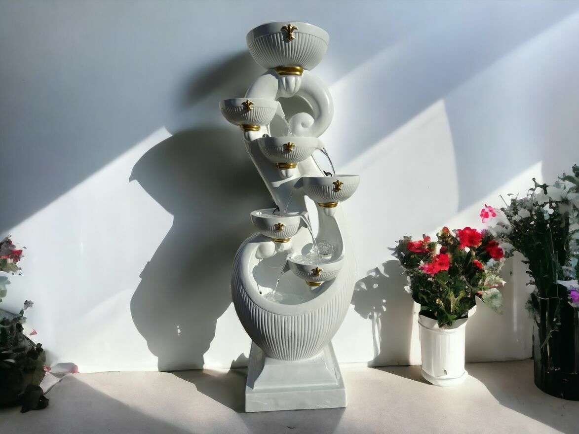 RZEMIOSŁO ARTYSTYCZNE / MALOWANE RĘCZNIE / NIE MA DWÓCH IDENTYCZNYCH .Fontanna w obiegu zamkniętym, woda w dolnym zbiorniku pompowana do górnego naczynia skąd kaskadowo – pod wpływem grawitacji spływa w dół …….. tu tego nie słychać ale jest to miłe i przyjemne doznanie zamykające oczy – można odczuć wrażenie przebywania blisko naturalnego strumienia ,