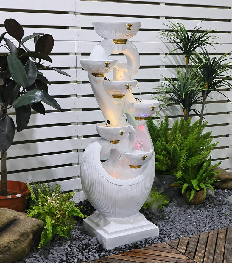 FONTANNA OGRODOWA " N E L " wysokość 133 cm - oświetlenie LED - zamontowane .W sezonie 2026 dostępny kolor BIAŁY - tylko !!! WAŻNE