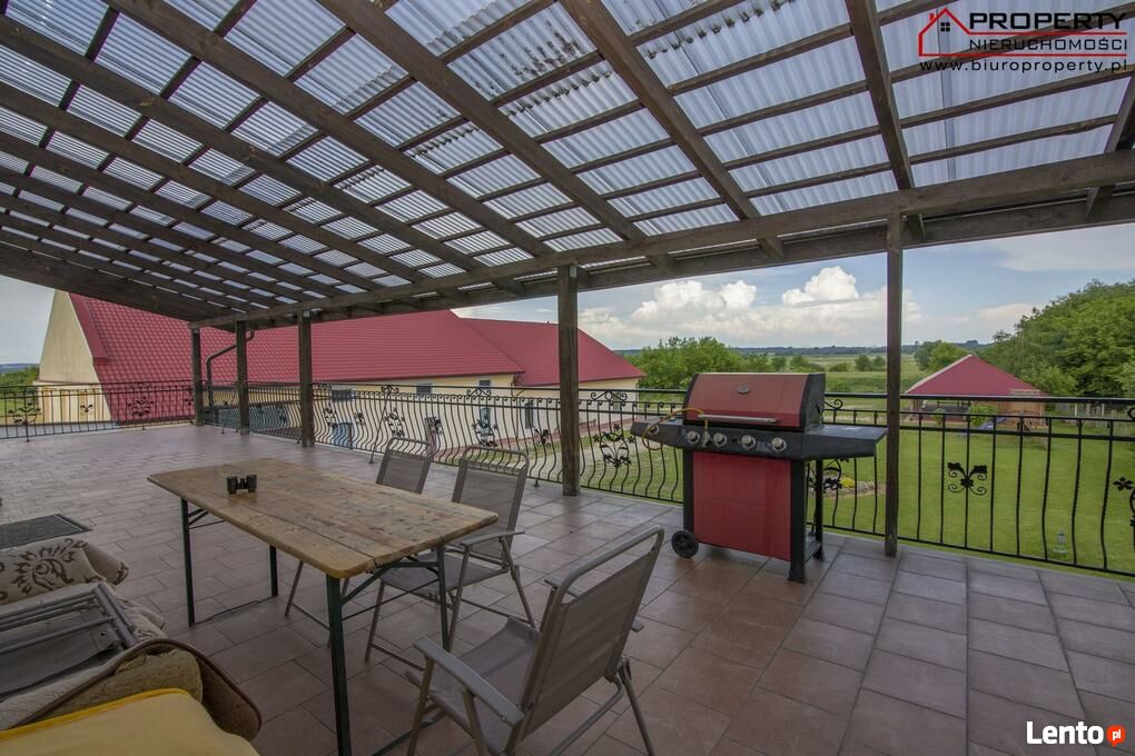 Budynki usytuowane na działce o powierzchni 9600m2 w całości ogrodzonej, od frontu drewnianym ogrodzeniem. Brama wjazdowa do nieruchomości otwierana automatycznie na pilota. Na działce znajdują się dwie altany. Pierwsza z nich obok sali bankietowej przystosowana jest do pomieszczenia 60 osób. Obok niej znajduje się plac zabaw dla dzieci. Druga altana pozwala ugościć 15 osób, posiada grillowisko, wędzarnie oraz basen.
