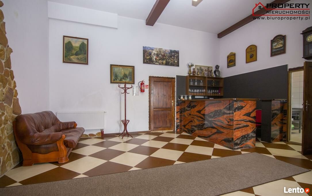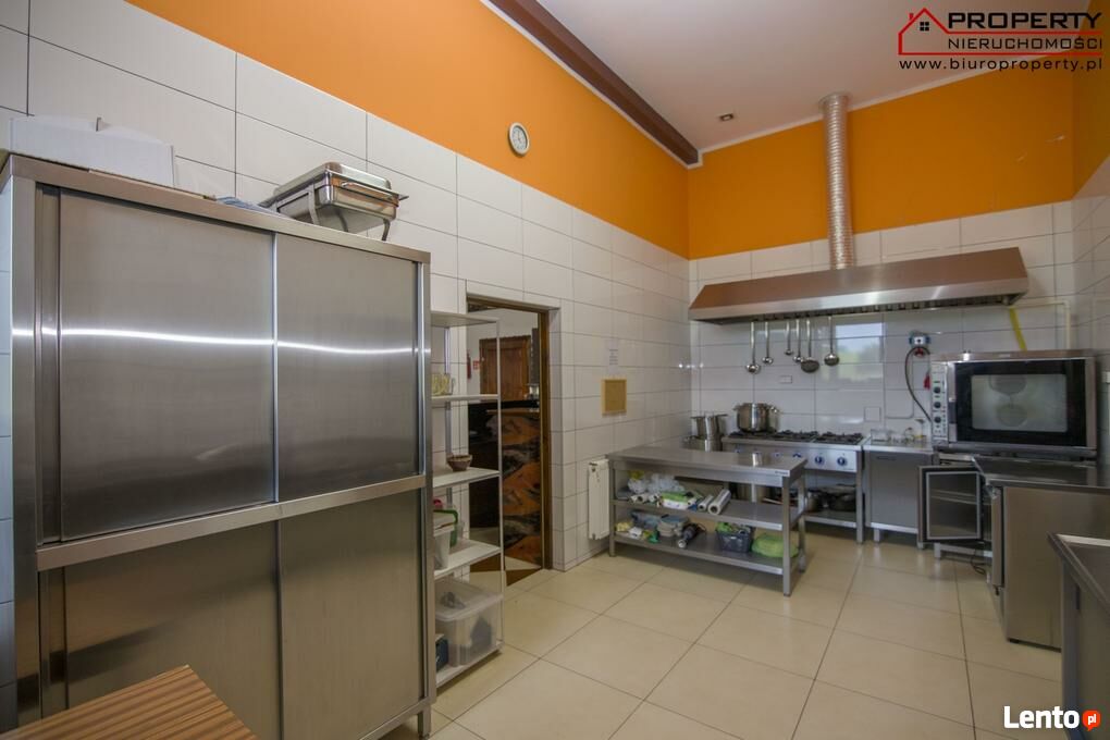 Budynek historyczny wybudowany z cegły oraz kamienia – w dawnych latach funkcjonował jako gorzelnia. Powierzchnia użytkowa budynku wynosi około 500m2 z czego w 2013r zostało wyremontowane około 350m2. Dach kryty blachą, okna plastikowe, ocieplenie 10cm styropianu. Nieruchomość składa się z dwóch sal dla gości, tanecznej oraz konsumpcyjnej, baru, kuchni z wyposażeniem, magazynów, pomieszczeń socjalnych oraz 4 łazienek dla gości i 1 dla personelu. Budynek pozwala na organizowanie imprez okolicznościowych do 100 osób takich jak komunie, chrzciny i wesela.